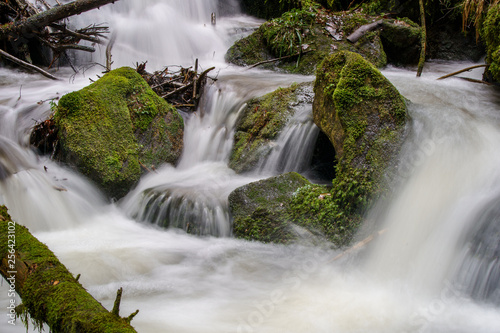 © kfritsch_69, Obraz premium Wasserfall mit Steinen voller Moos