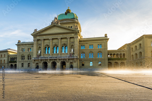 © matho, Fototapeta premium Wasserspiel vor dem Bundeshaus, Bern