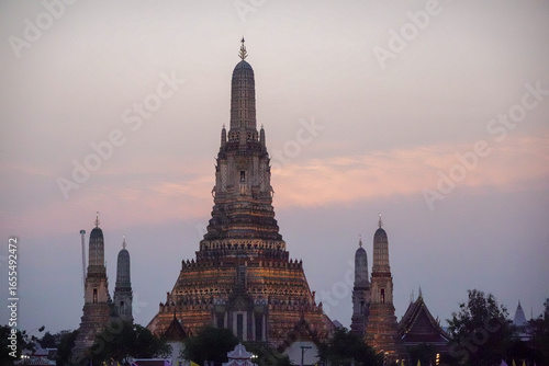 © SILI, Fototapeta premium Wat Arun against layered pink violet twilight