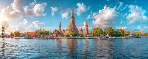 © 9DIGITECH, Obraz premium Wat Arun, one of Tourist attractions famous landmarks travel of Thailand.