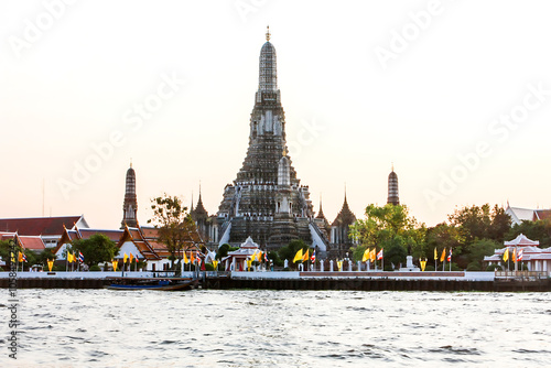 Obraz premium Wat Arun Ratchawararam or Wat Chaeng or Wat Arun is another beautiful landmark located on the banks of the Chao Phraya River. It has a large prang. Thais and foreigners like to visit and pay homage.