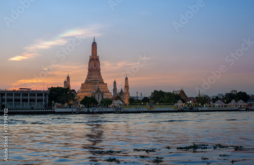 Obraz premium Wat Arun - Świątynia Świtu w Bangkoku w Tajlandii w czasie zachodu słońca