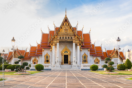 Naklejka premium Wat Benchamabophit Dusitvanaram or White Marble Temple is Famous in Bangkok...