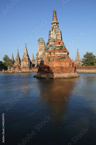 Fototapeta premium Wat Chai Wattana Ram great flood water on Thai.