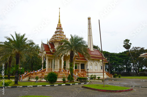 Naklejka premium Wat Chalong Temple, Phuket, Thailand. View on building of the temple surrounded by palms