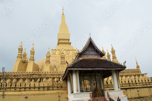 Fototapeta premium Wat in Lao.temple gold on sky background.
