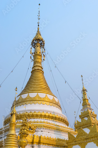 Fototapeta premium Wat Jong Klang delicate with Burmese and Thai fusion art in even