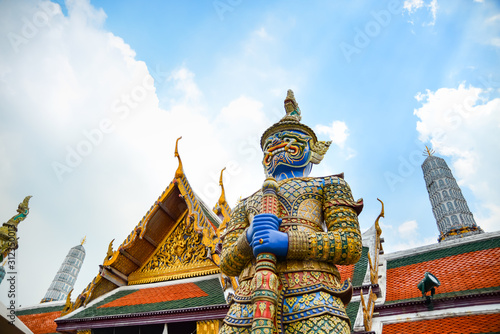 © stockbob, Fototapeta premium Wat Phra Chettuphon Wimon Mangkhalaram Ratchaworamahawihan (Wat Pho) has a pair of giants like Wat Chaeng. There is a legend telling about the fighting.