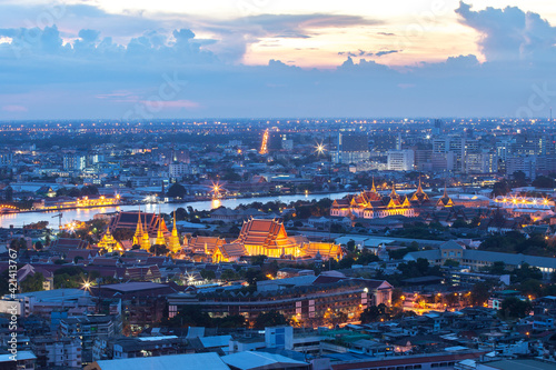 Obraz premium Wat Phra Kaew, Grand Palace with the river at Dusk (Bangkok, Thailand)
