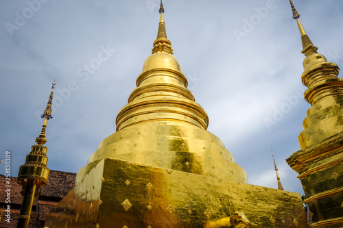 Naklejka premium Wat Phra Singh golden stupa, Chiang Mai, Thailand
