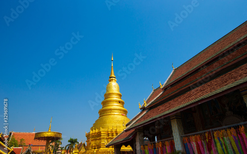 © Champ, Naklejka premium Wat Phra That Hariphunchai is a Buddhist temple in Lamphun, Thailand