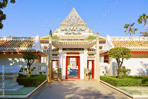 © jobi_pro, Fototapeta premium "Wat Ratchaorasaram" as written over the entrance, a first class royal monastery and Royal Temple of Chakri Dynasty's King Rama III, Bangkok, Thailand