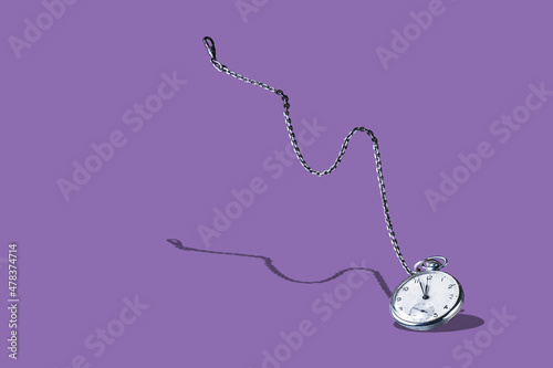 © Rara, Fototapeta premium watch with chain, with a shadow on a very peri background, copy space