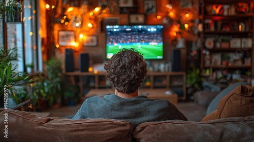Naklejka premium Watching A Soccer Championship At Home, Filled With Excitement