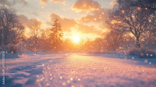 © Nawarit, Naklejka premium Watching a winter sunset with glowing AR environmental data, serene snowy landscape, soft ambient lighting, photorealistic