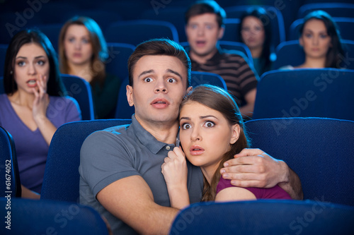 © gstockstudio, Fototapeta premium Watching horror movie.