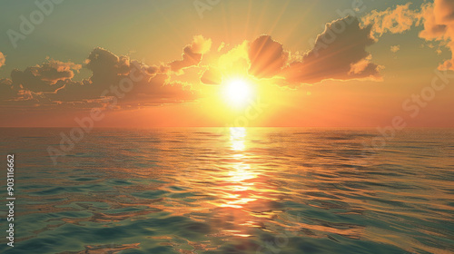 Obraz premium Watching the sun sink below the horizon, casting a warm glow on the tranquil...