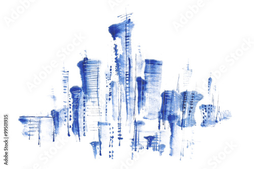 © Blue Jean Images, Obraz premium Water-and-ink cityscape