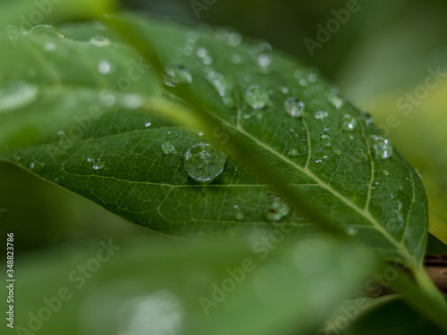 Fototapeta premium Water balance on leaf Natural green background