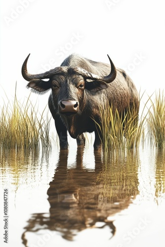 © Murda, Naklejka premium Water buffalo in water with tall grass.