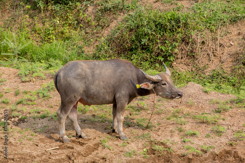 © piyagoon, Obraz premium Water buffalo standing on green grass