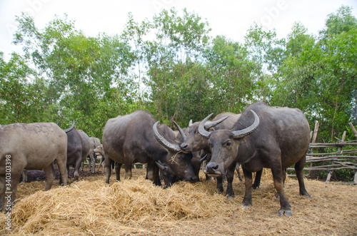 Fototapeta premium Water buffaloes are eating straw in the stall,Songkhla, Tailand