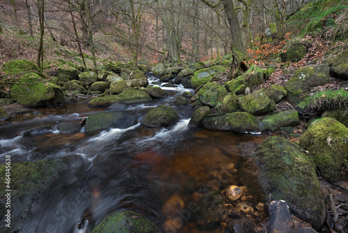 © Neil, Obraz premium Water cascading over mossy rocks down Padley Gorge, Peak District National Park, Derbyshire