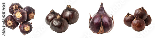 © Sawera, Obraz premium Water chestnut isolated on transparent background, PNG, Set of