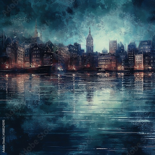 © Lukas, Naklejka premium Water city digital art. Created with Generative AI Technology.
