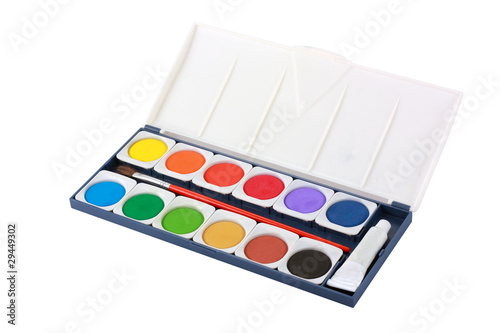 Fototapeta premium Water color box with brush isolated