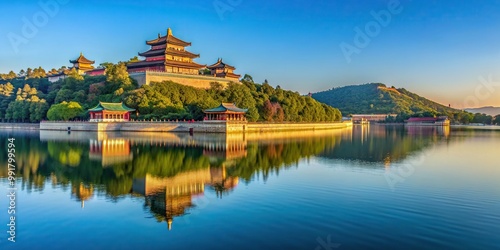 Naklejka premium water, destination, lake, historic, Chinese, Beijing, architecture, blue sky,...