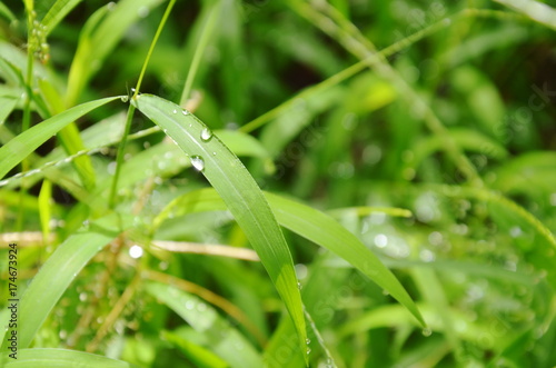© pedphoto36pm, Obraz premium water drop on grass leaf on morning