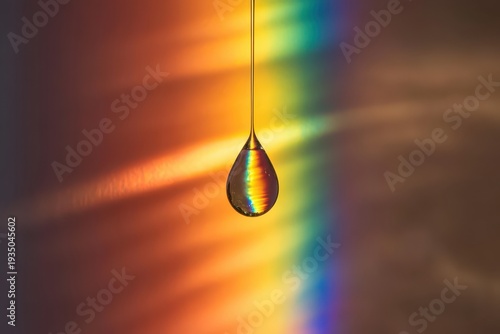 Fototapeta premium Water drop refracting light with rainbow spectrum background