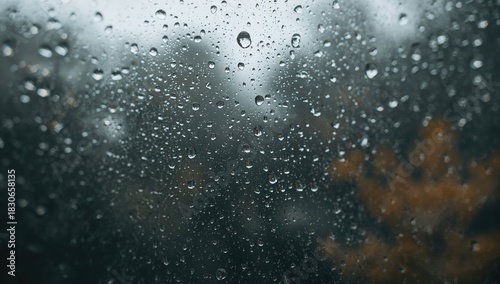 Obraz premium Water droplets on glass with a blurred natural backdrop, enhancing focus on...