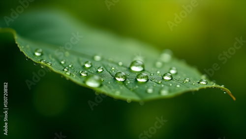 Fototapeta premium Water Droplets on Green Leaf, Macro Freshness
