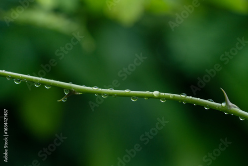 © Thanumporn, Obraz premium Water droplets on green tree branches.