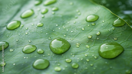 © Yopi, Fototapeta premium Water Droplets on Lush Green Leaf Macro Photography