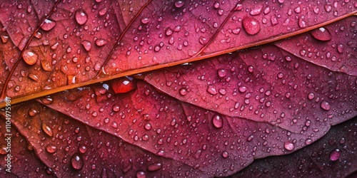 © Tevarplus, Fototapeta premium water droplets Shiny leaf A detailed macro shot