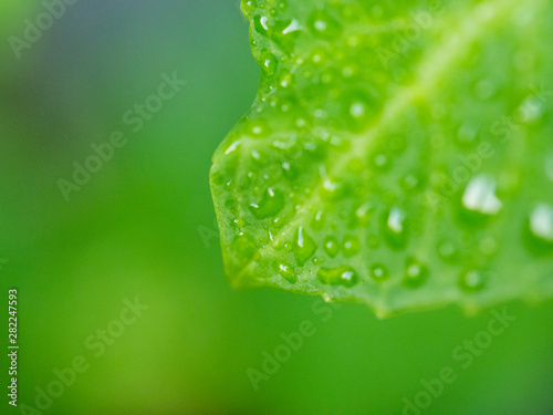 Fototapeta premium Water drops on a green leaf.