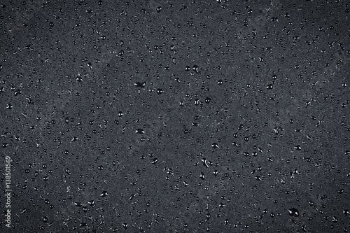 © VertigoBarrov, Fototapeta premium Water drops on dark stone