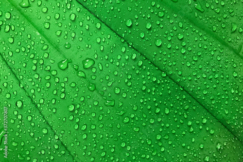 Fototapeta premium Water drops on green canvas background