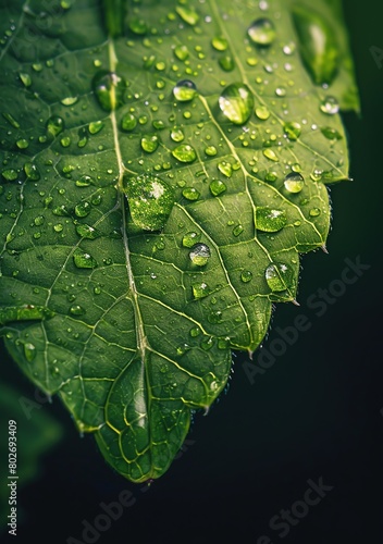 © Obsidian, Fototapeta premium Water drops on green leaf. Nature background. Shallow depth of field
