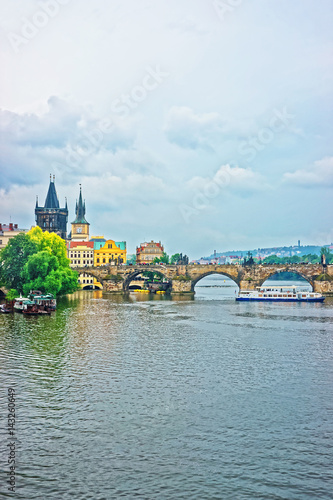 Naklejka premium Water Ferry at Charles Bridge in Prague