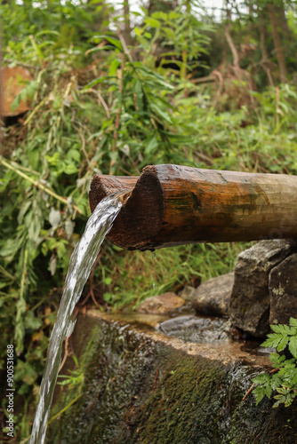 Obraz premium water flowing from a wood pipe