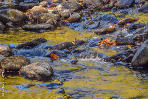 Fototapeta premium water flowing over rocks in the quinapoxet river
