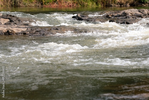 © Louis, Fototapeta premium Water flows in the rocky Waitangi river