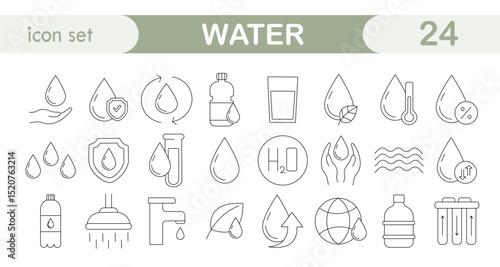 Fototapeta premium Water. Icon set, linear, vector