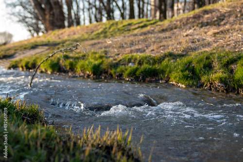 © Janek.Borzemski, Fototapeta premium Water in river with grass
