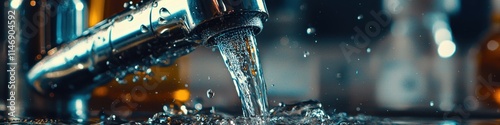 © Valentina, Naklejka premium water is poured into a glass. Selective focus