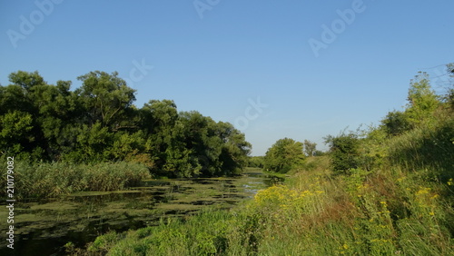 © Alexey, Fototapeta premium water, lake, river, landscape, sky, nature, reflection, blue, summer, tree, trees, pond, forest, green,